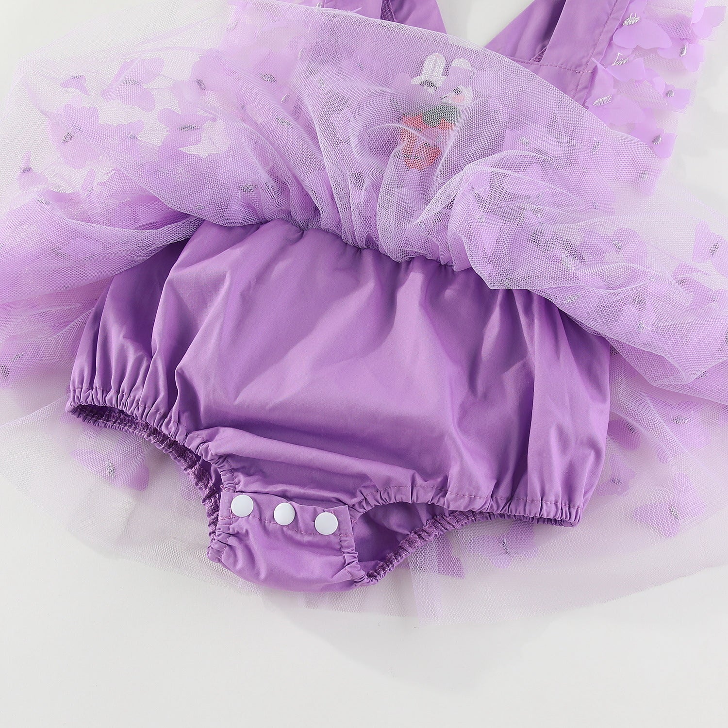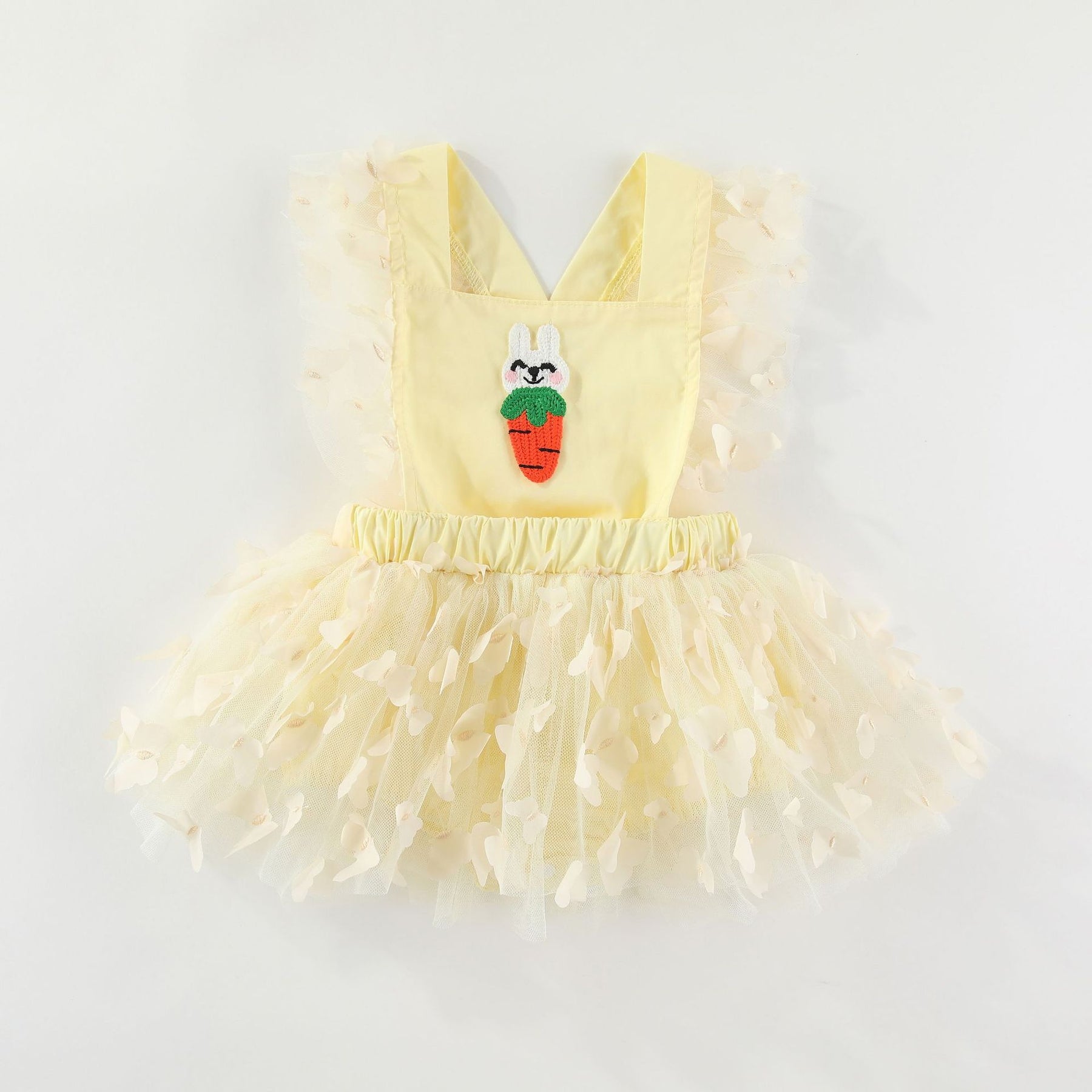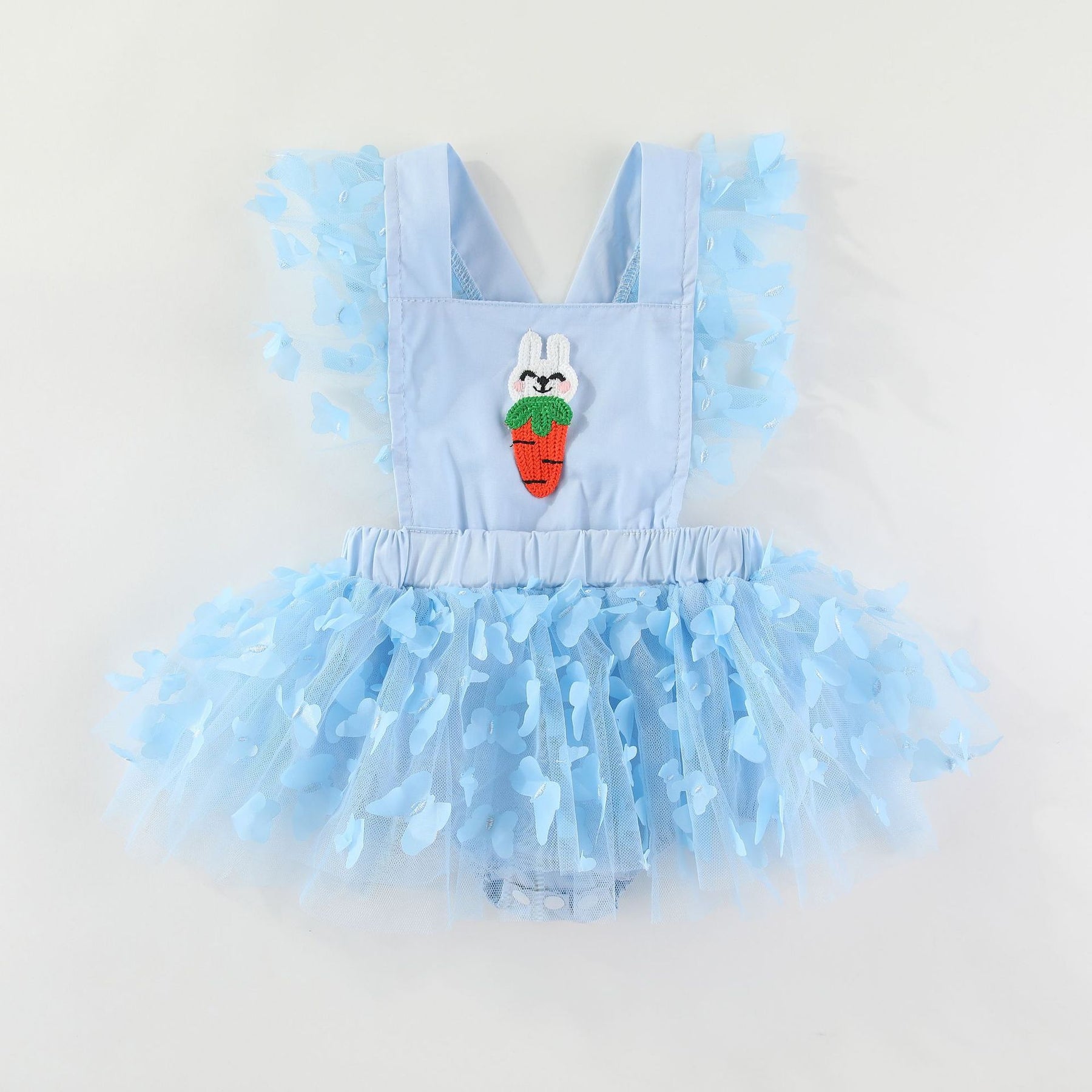 Easter bunny embroidered baby romper with butterfly mesh