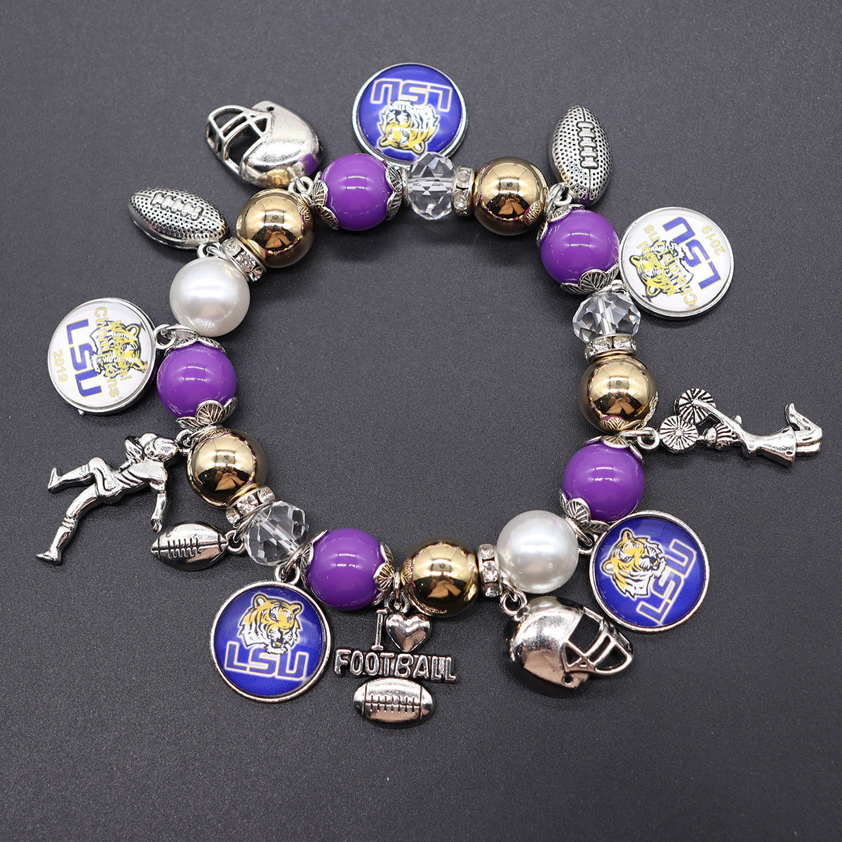 Football Game Day Alloy pendant beaded bracelets